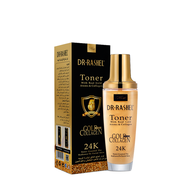 - Toner with gold and collagen alcohol-free gently purifies the skin without causing dryness.
